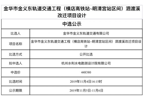 金華-義烏-東陽市域軌道交通工程軌道、公交乘車碼二碼融合AFC系統(tǒng)集成項目中標候選人公示