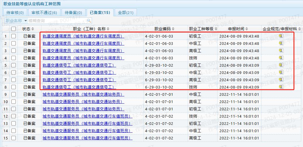 截至目前,市軌道交通集團(tuán)運(yùn)營(yíng)公司職業(yè)技能等級(jí)認(rèn)定評(píng)價(jià)范圍如下:
