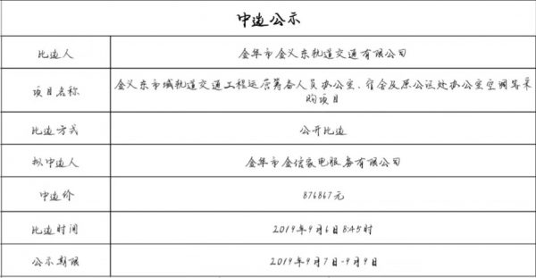 金華-義烏-東陽市域軌道交通工程軌道、公交乘車碼二碼融合AFC系統(tǒng)集成項(xiàng)目中標(biāo)候選人公示