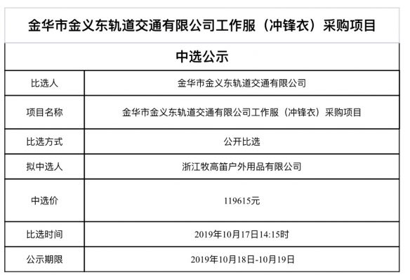金華市軌道交通控股集團(tuán)物業(yè)管理服務(wù)有限公司2025-2026年度勞務(wù)派遣人員工作服采購(gòu)項(xiàng)目中標(biāo)候選人公示