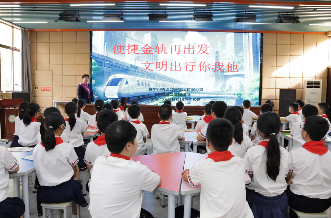 為進(jìn)一步宣傳普及軌道交通乘車知識(shí),增強(qiáng)學(xué)生群體的安全意識(shí),近期,金華軌道交通工作人員走進(jìn)東陽橫店二小教育集團(tuán)荊江校區(qū),開展“便捷金軌再出發(fā),文明出行你我他”安全宣講活動(dòng)。