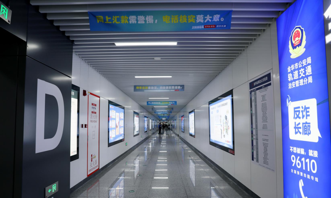 在反詐主題長廊內(nèi),各類反詐防詐知識以圖文并茂的形式進行展現(xiàn),同時創(chuàng)新推出“金軌反詐之旅”、“反詐納涼講座”等反詐宣傳形式。進一步提升乘客反詐防范意識,營造“人人識詐、人人防詐”的良好氛圍。